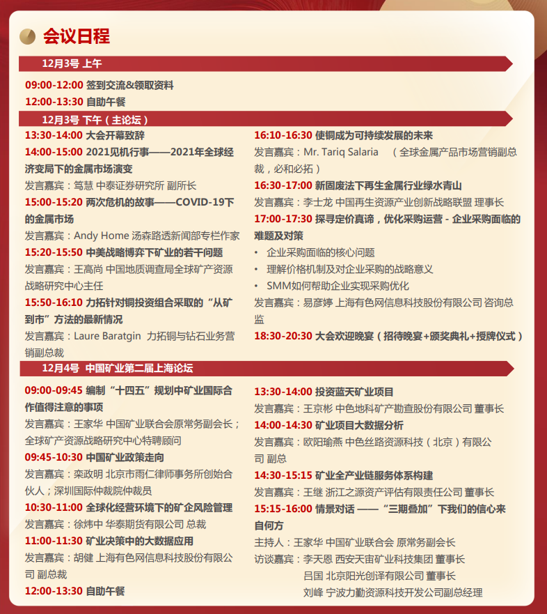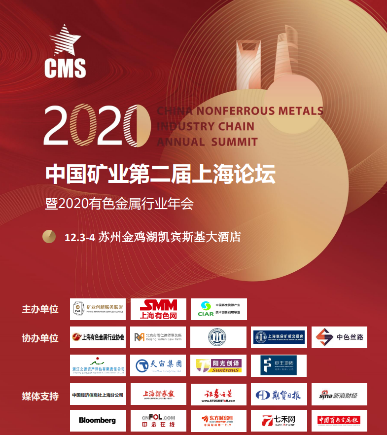 上海有色网信息科技股份有限公司、上海矿业全产业链服务创 新联盟、中国再生资源产业技术创新战略联盟共同举办的“2020中国矿业第二 届上海论坛暨SMM有色金属行业年会”,会议将于12月3日在江苏苏州金鸡湖凯 宾斯基大酒店举行。